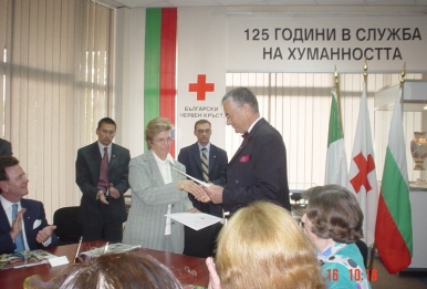 The Bulgarian Red Cross presents an award to Jörg Schenk 2004